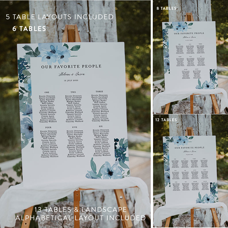 - Seating Chart - 18x24" & 24x36" (5 layouts & alphabetical landscape version included)