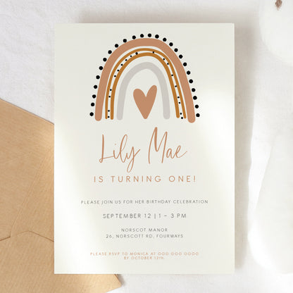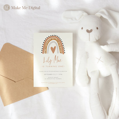 Bohemian Terracotta Rainbow First Birthday Invitation