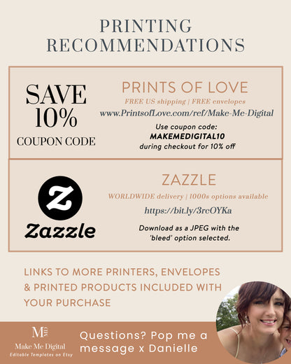 For guidelines on how easy it is to print at home or with a print shop of your choice, please see How to Edit your Template & How To Prepare Your Template for Print pages for detailed instructions.
