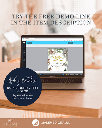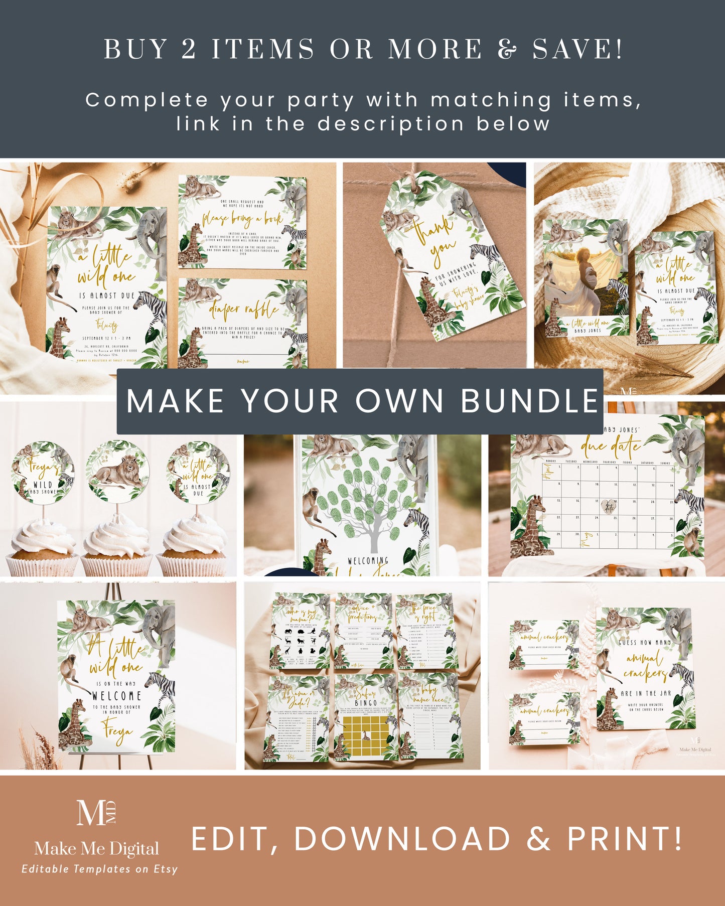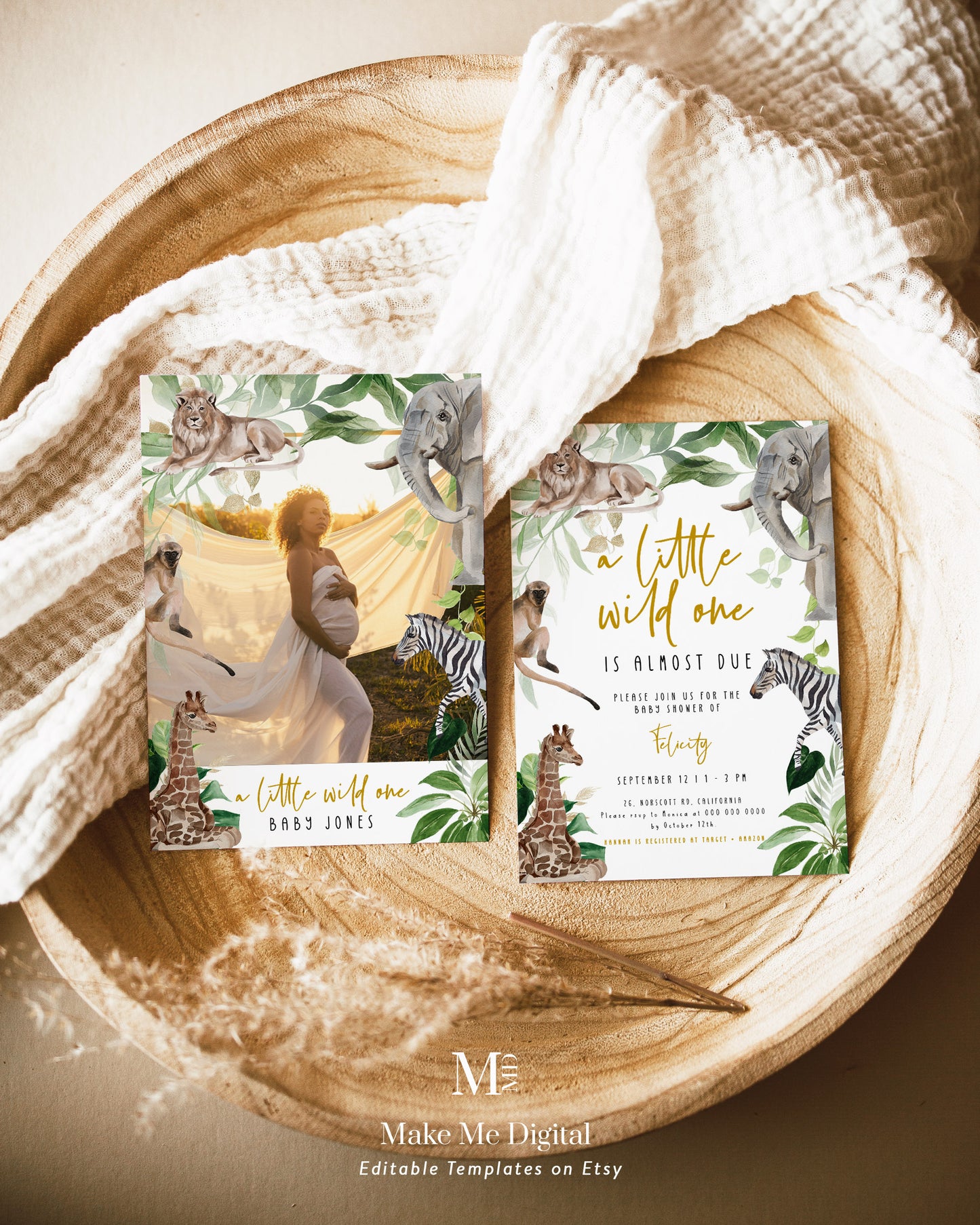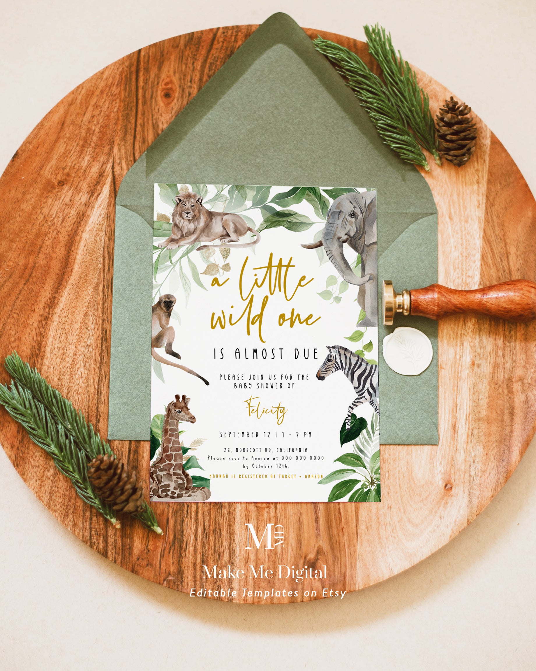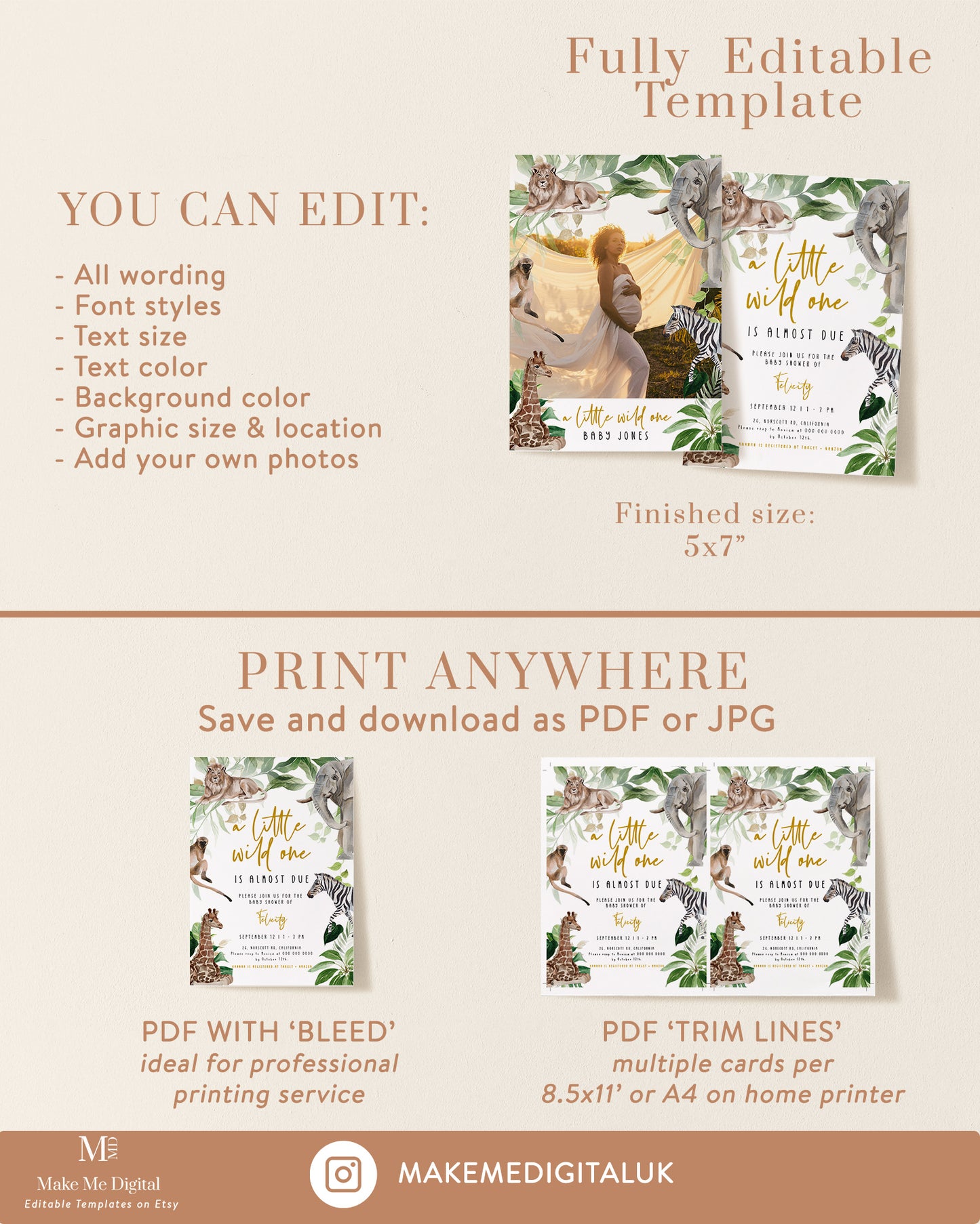 Boho Safari Animal "Little Wild One" baby shower invite sizes included + instructions: