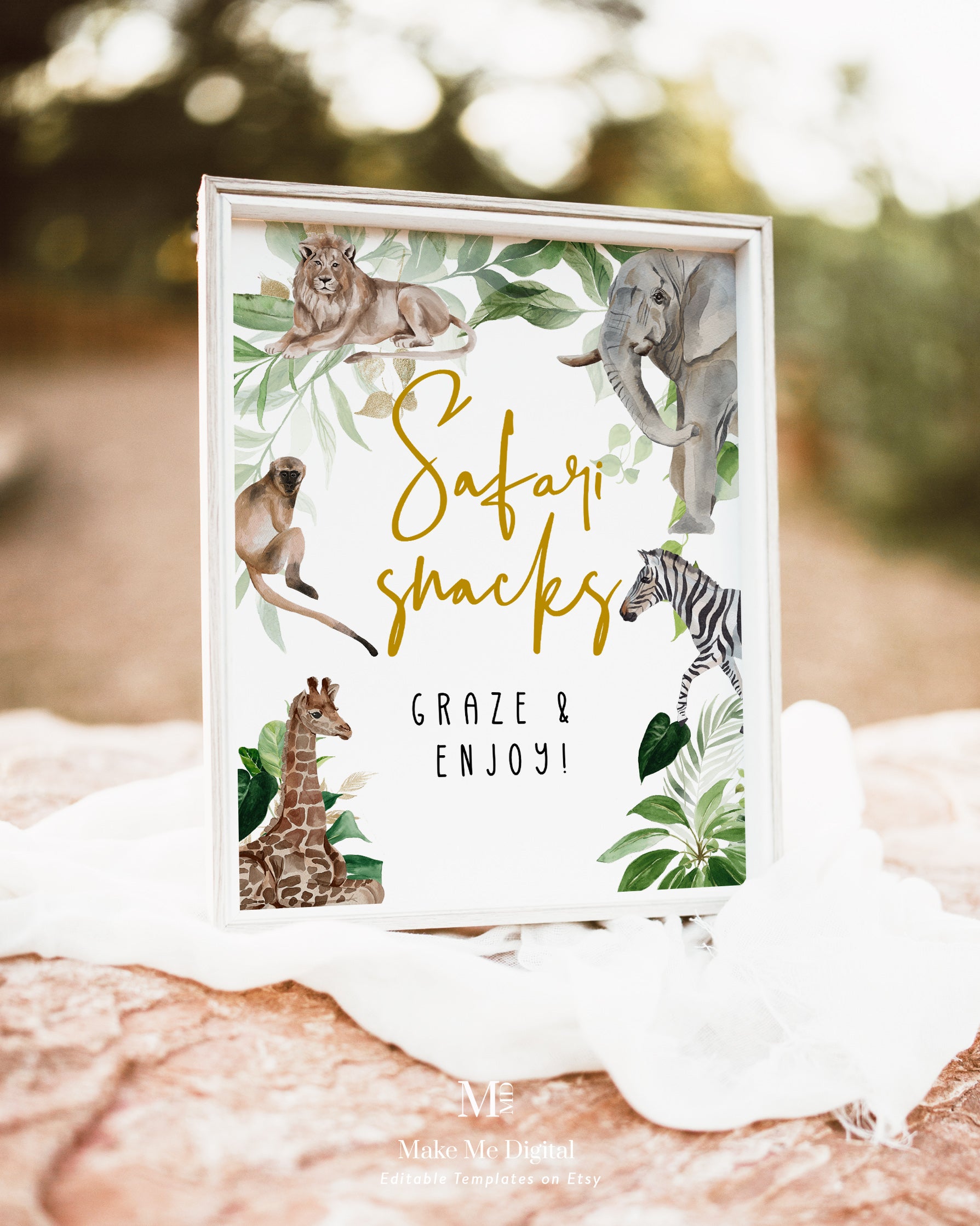 Boho Safari Animal "Safari Snacks" baby shower party sign sizes included + instructions: