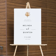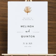 Save time, money, and wow your guests by printing your own rustic palm leaf wedding welcome sign! Edit all the wording, colors, fonts, and icons to match your event needs.