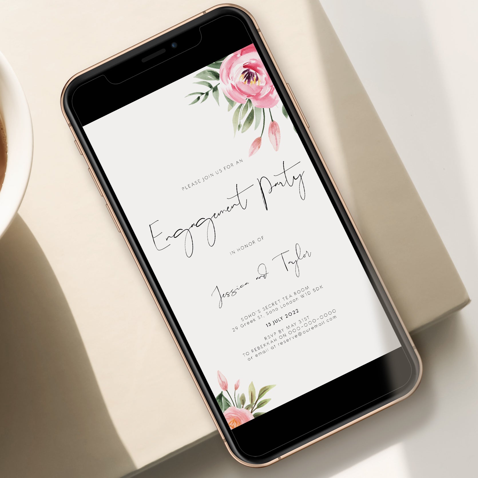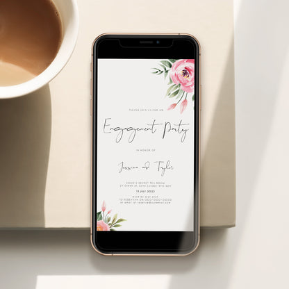 Serena Pink Peony Engagement Party Evite
