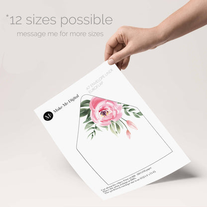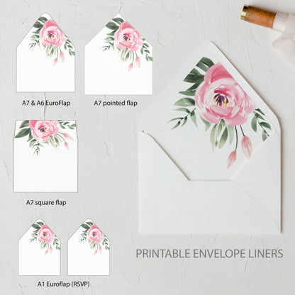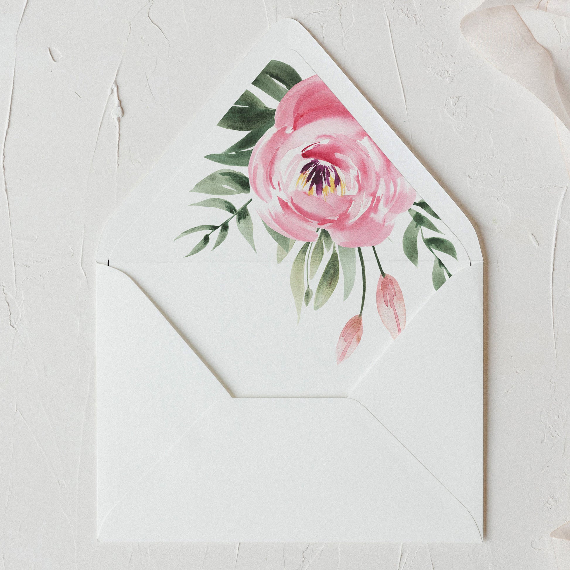 Pink Peony Liner Template - DIY Floral Envelope Liner - Peony Wedding Envelope Liner - Printable Wedding Envelope - wedding stationery