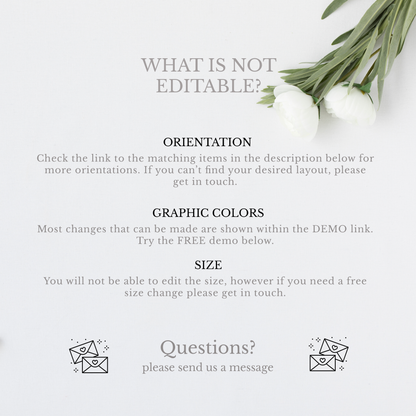This is a digital download available directly after purchase. Due to the nature of a digital product, it can’t be exchanged or returned after purchase. Please read the product descriptions before purchase or ask as many questions as you require. We do not provide refunds due to change of mind, cancellation of an event, going with another vendor, or if you're not satisfied with a third-party service (such as your printer).
