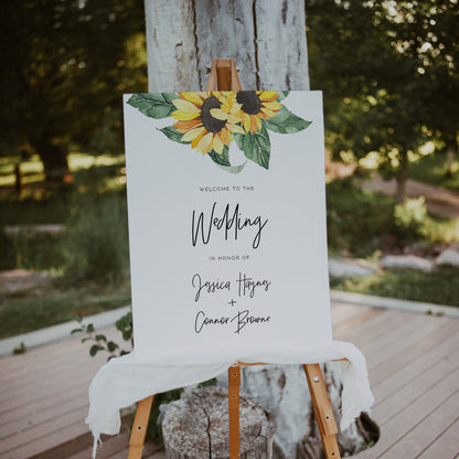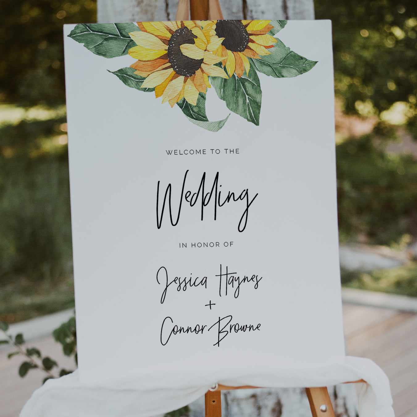 Save time, money, and wow your guests by printing your own sunflower wedding welcome sign! Edit all the wording, colors, fonts, and icons to match your event needs.