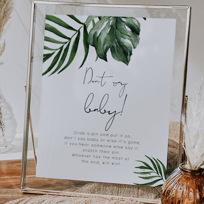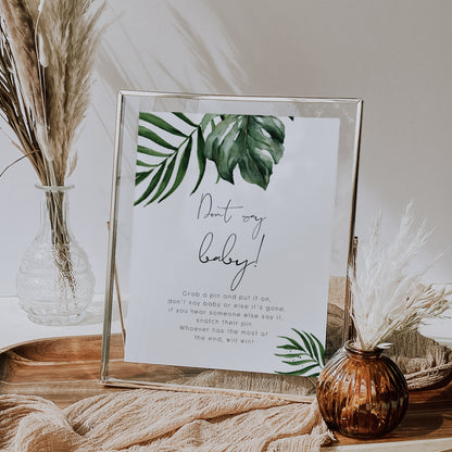 Tropical & Gold Baby Shower Don't Say Baby Game Sign