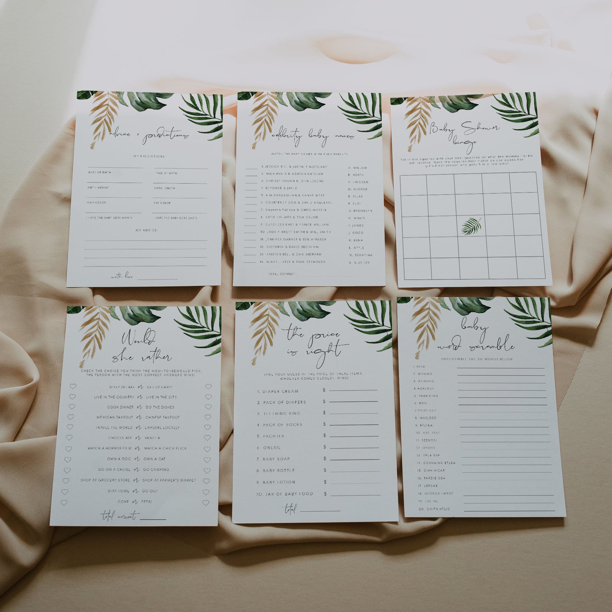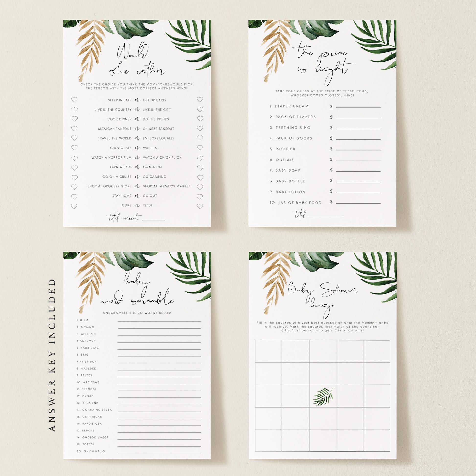 Tropical & Gold Baby Shower Game Pack (6)