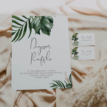 Tropical Diaper Raffle Sign & ticket sizes included + instructions:- 5 x 7 inch Sign