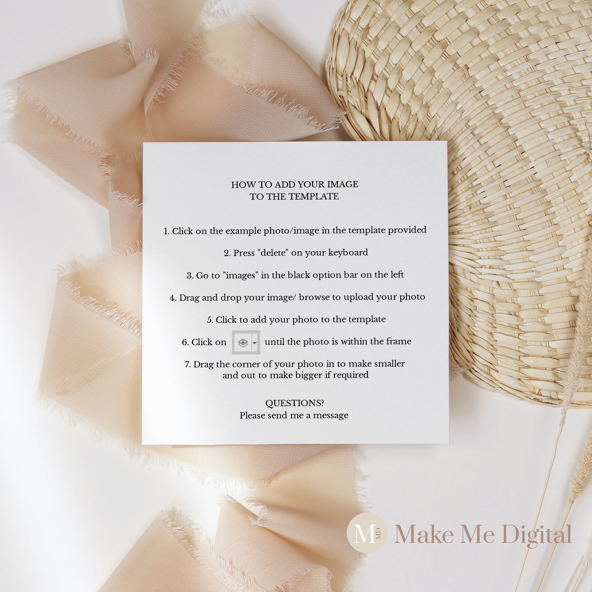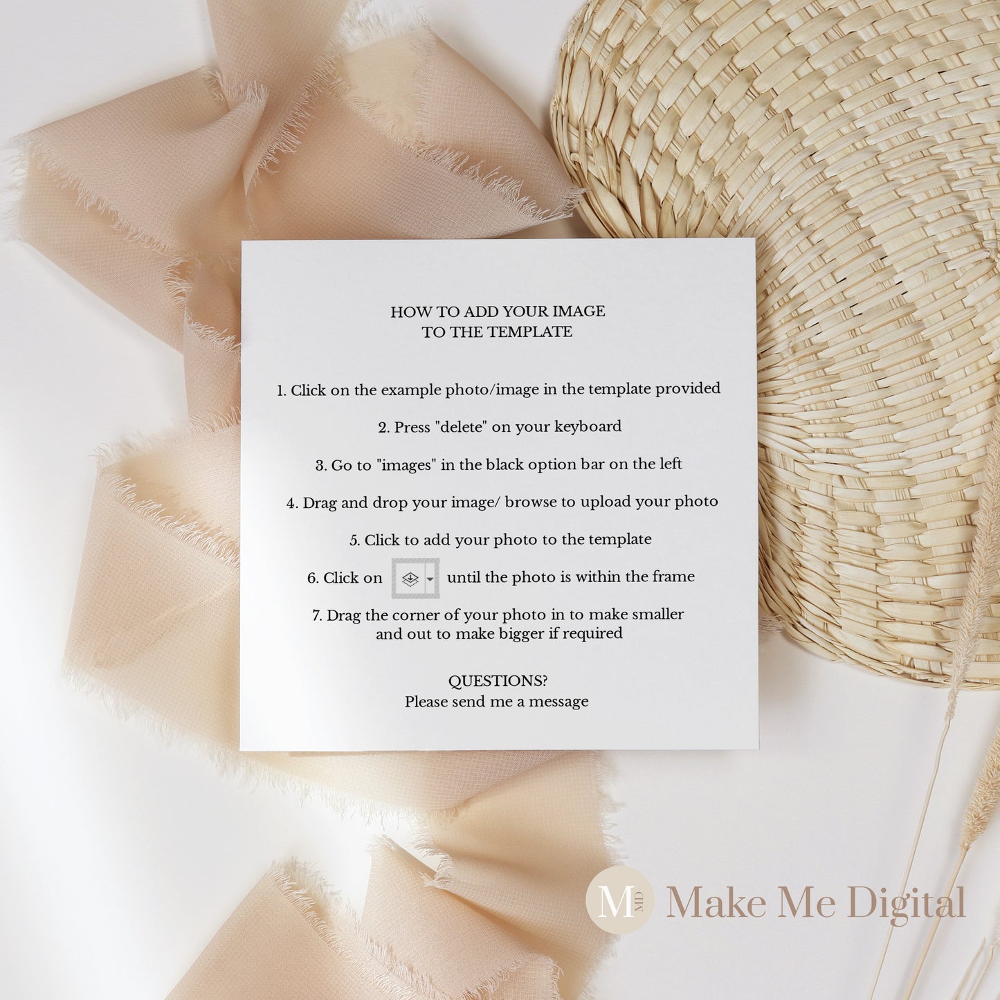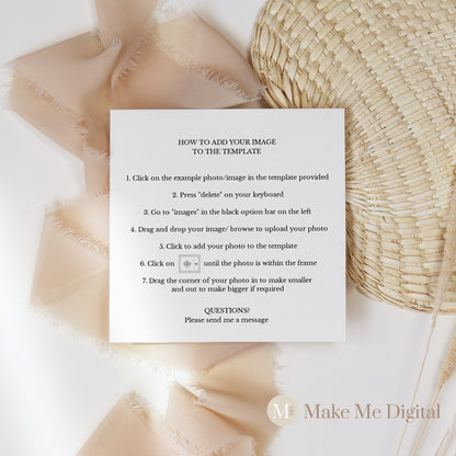 The editing instructions are emailed to you in the thank you email directly after purchase and are available within the Templett design window.