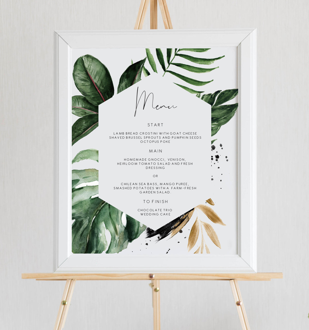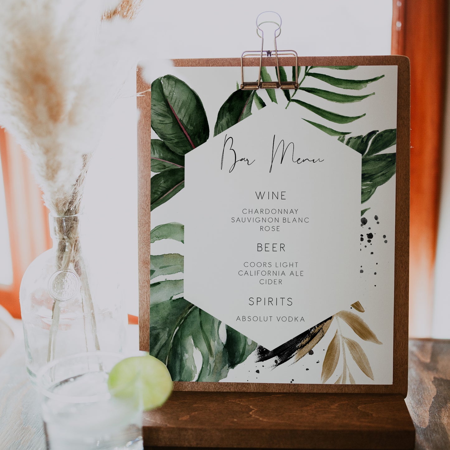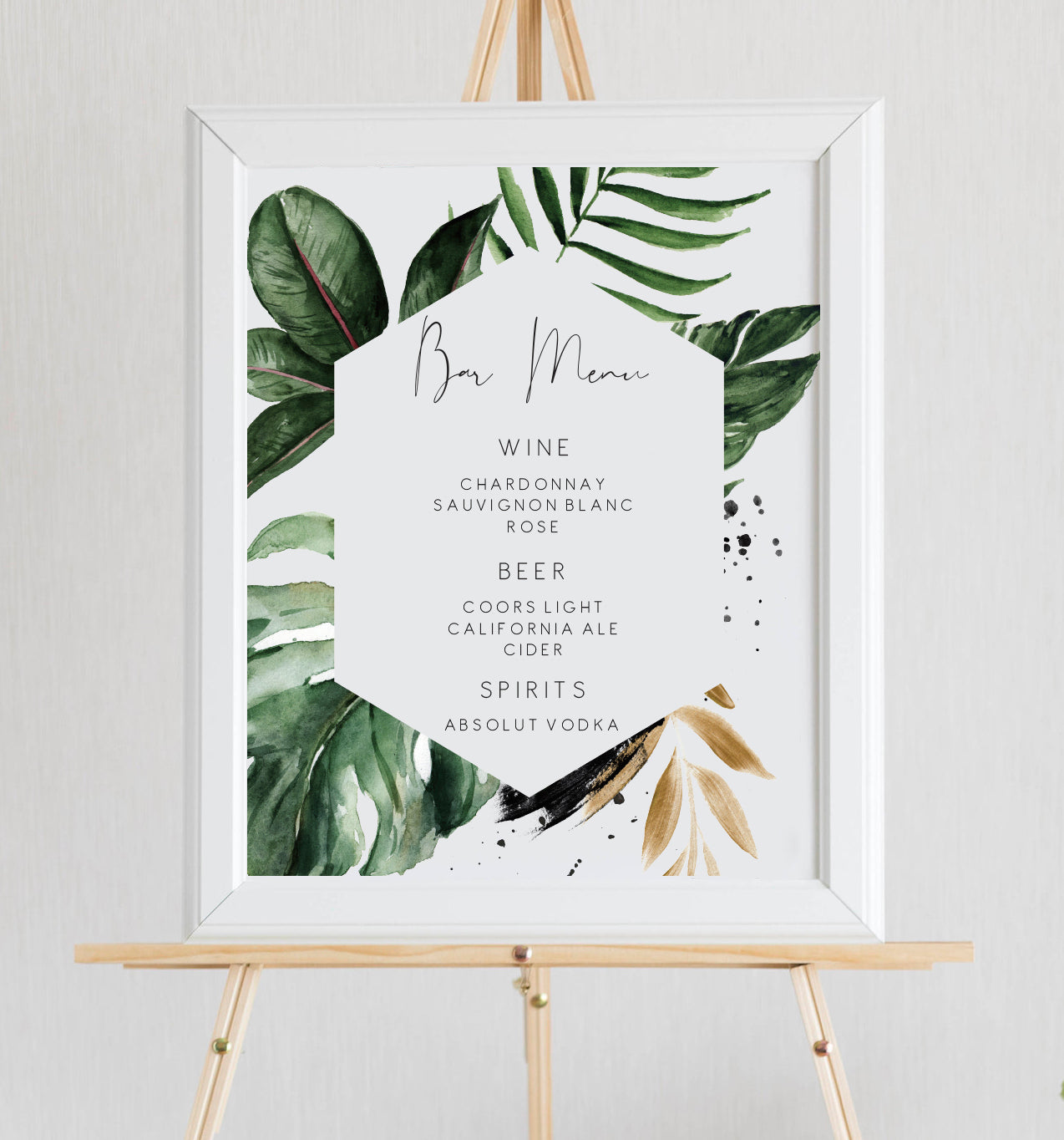 Tropical & Gold Wedding Bar Menu Sign