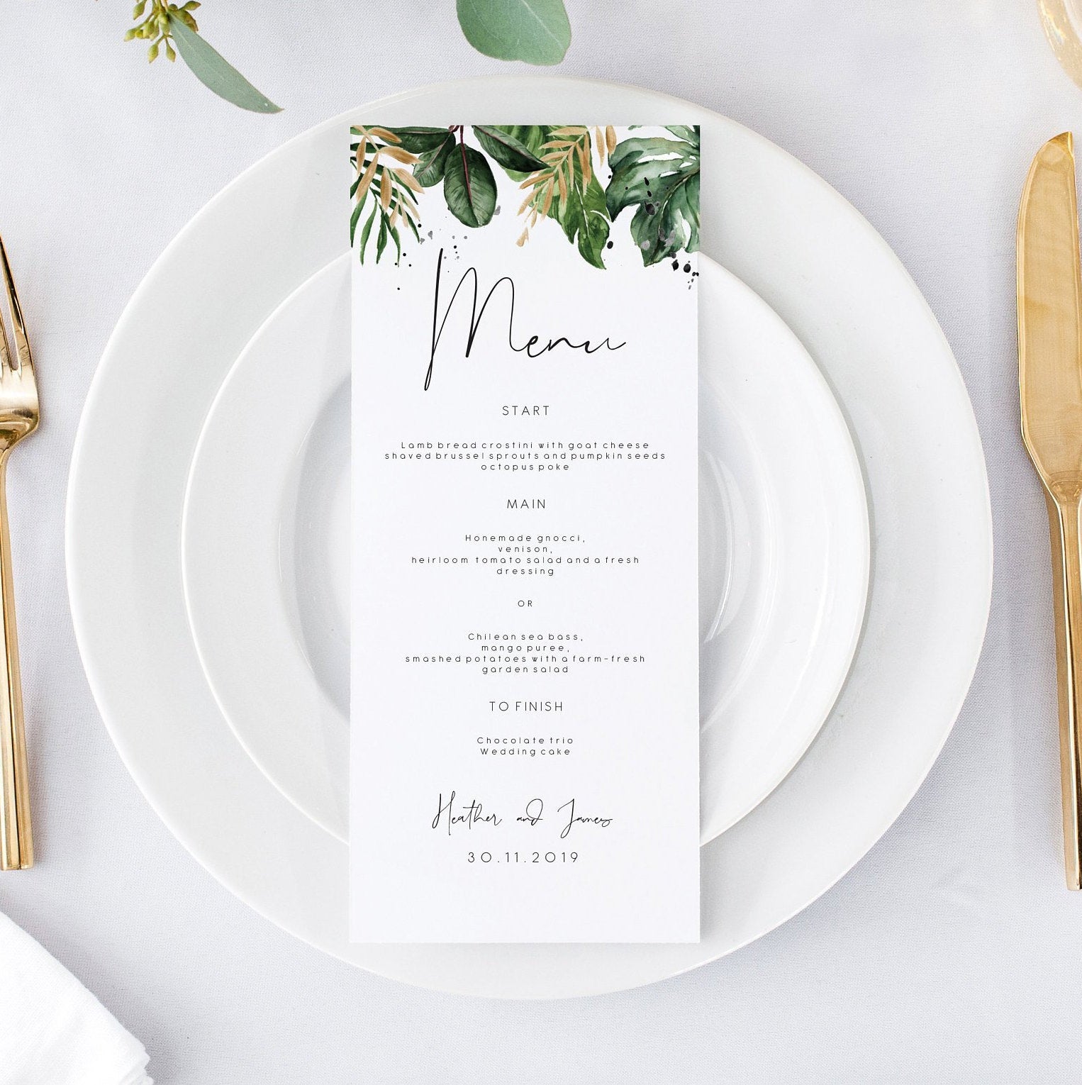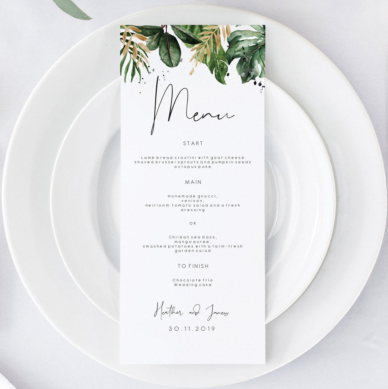 Tropical wedding menu summer greenery bridal shower menu, botanical dinner menu, instant download, 119