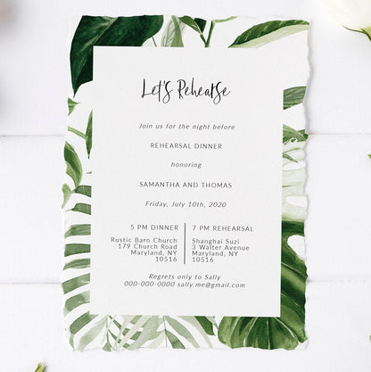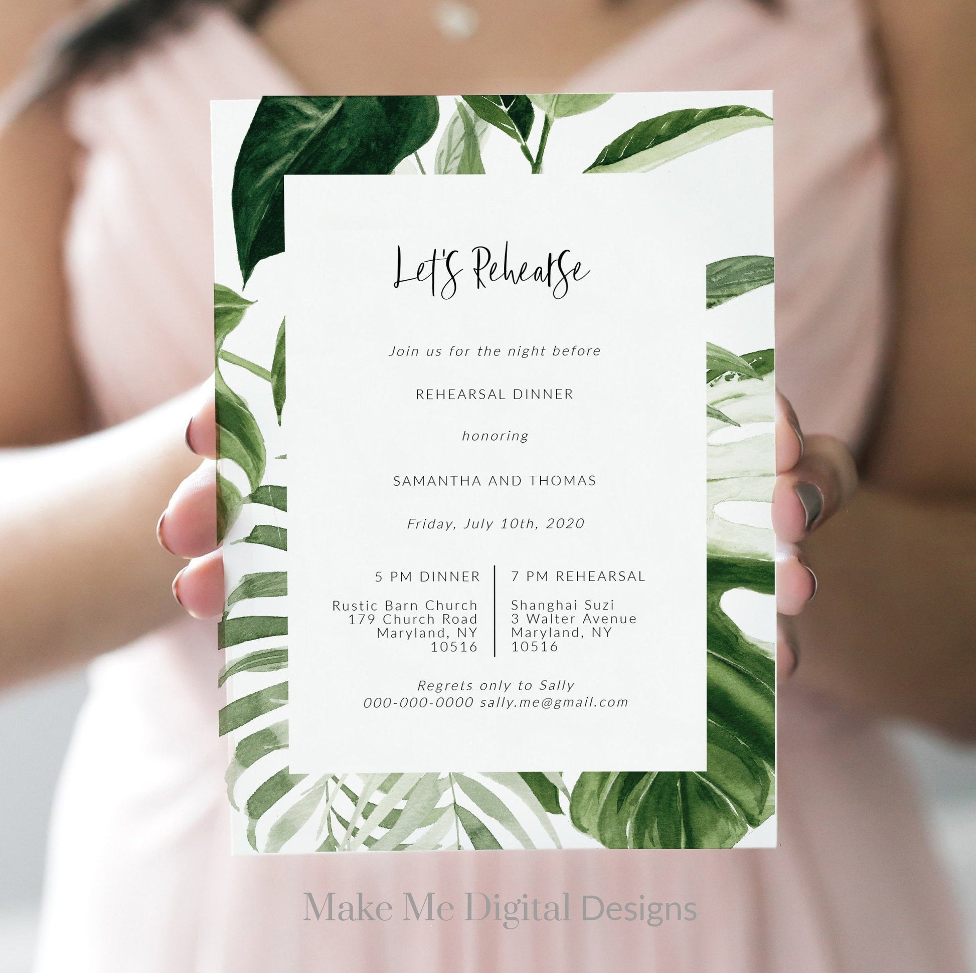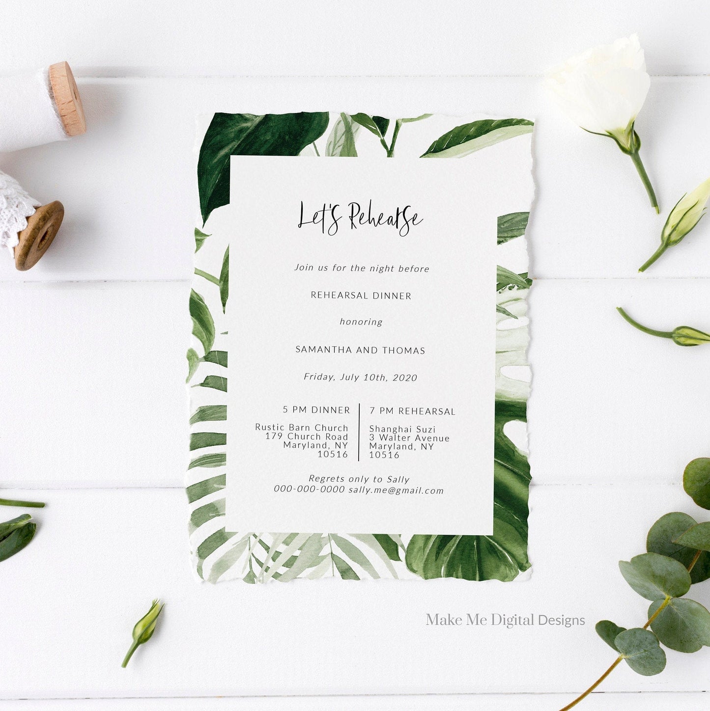Tropical Rehearsal Dinner Template - Beach Wedding Rehearsal Invitation - Tropical Rehearsal Dinner Invite Template - Palm leaf Printable Wedding Rehearsal Invite - Monstera Wedding Rehearsal Dinner invitation