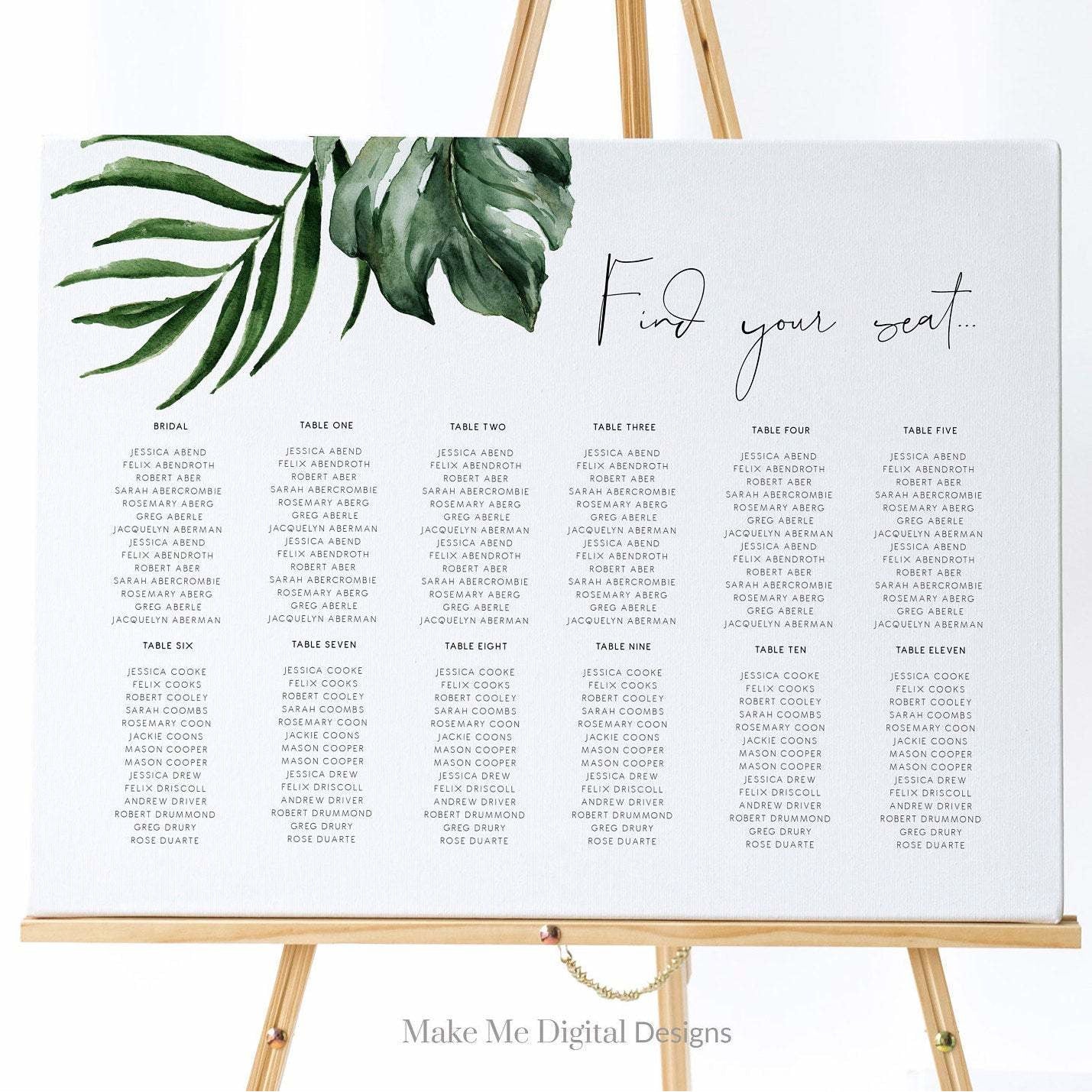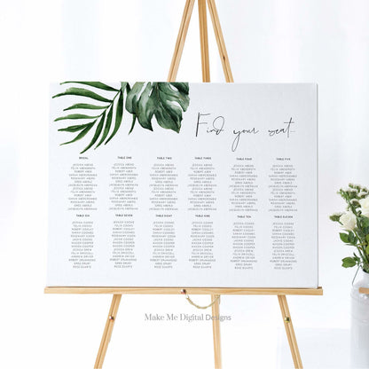 Tropical Wedding Seating Chart, Beach Wedding Table Plan, Tropical wedding escort cards, printable seating plan, instant download template, find your seat, palm leaf, banana leaf