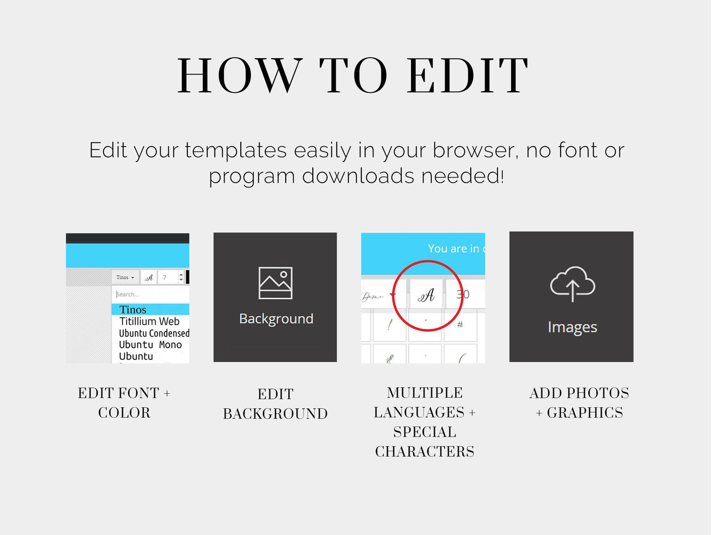 These templates can be accessed through TEMPLETT.COM; an online editor that allows you to personalize your templates without installing any software or fonts. You will receive an email from TEMPLETT.COM just moments after purchase to begin personalizing your templates. Edit, download, and print at home or with any printing center.