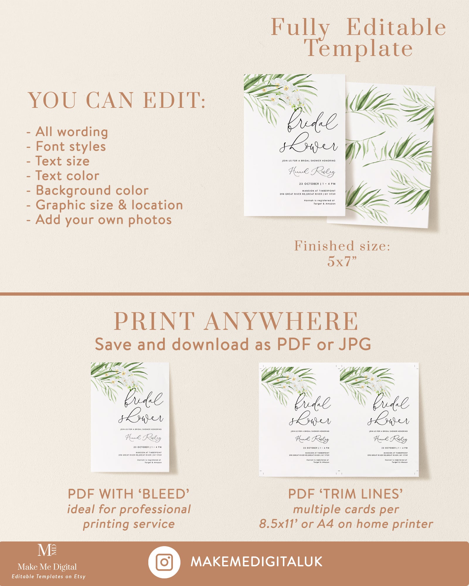 Please note that this is a digital Invitation template to download only, no physical product will be shipped.