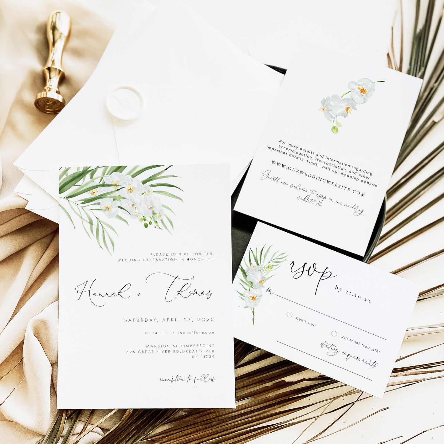 Save time, money, and wow your guests by printing your own wedding invitation suite! Edit all the wording, colors, fonts, and icons to match your event needs.